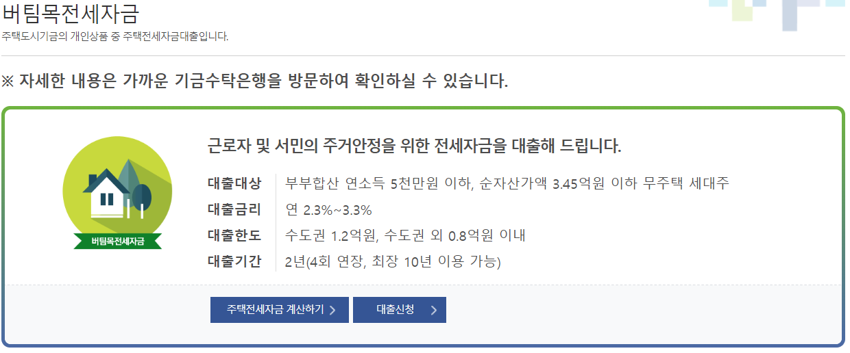 수탁은행(버팀목대출과 연계된 은행)이 정해져있는데(홈페이지에서 확인!)