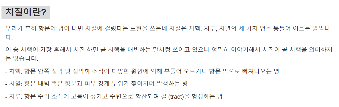 우선 치질이라는 것에 대한